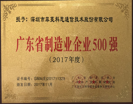 • 广东省制造业企业500强(2018年度)
