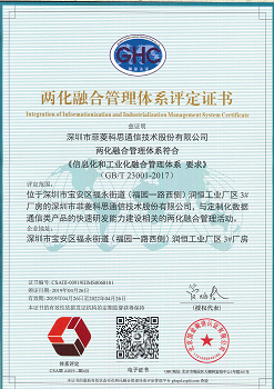 • 两化融合管理体系评定证书